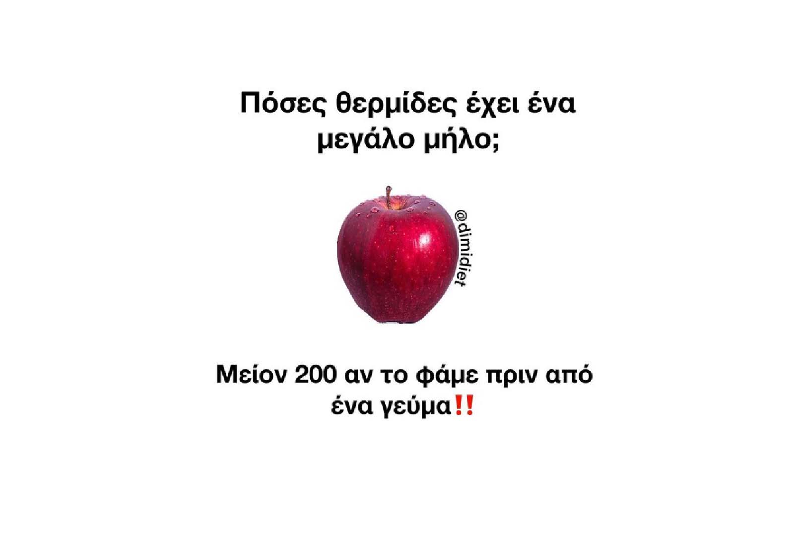 Φαίνεται πως ένα μεγάλο μήλο πριν το κυρίως γεύμα μας κάνει να φάμε περίπου 200 θερμίδες λιγότερες‼️🙉